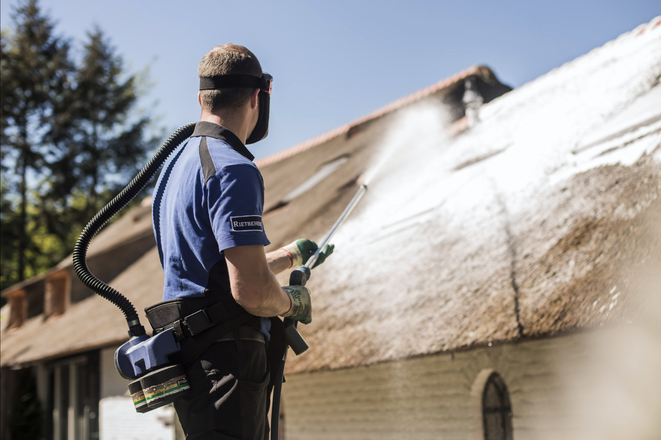 Jaarlijks sprayen tegen mos en algen is veruit de beste methode om de levensduur van uw rietendak te verlengen. Een schoon dak droogt veel sneller, hierdoor zullen de schimmel sporen aan het oppervalk van uw dak blijven (niet dieper dan 2 á 3 cm) Bij een dak dat niet wordt gesprayd zitten de schimmel sporen na 3 jaar al snel 8 á 10 cm diep)